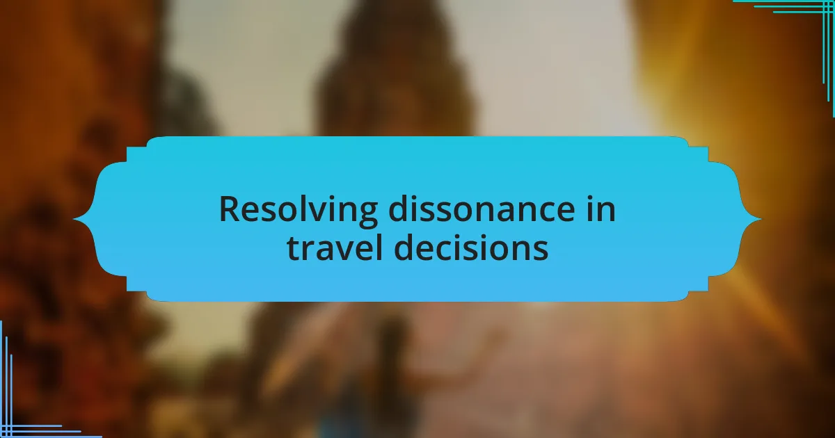Sometimes, taking a step back and evaluating what truly matters during our travels can help in diffusing dissonance. I recall a time when I felt pressured to fit in with my travel companions’ agenda. By openly communicating my desires to spend time in quieter surroundings, I found common ground, which enriched our overall travel experience. This taught me that resolving dissonance often involves a balance between our own preferences and the collective enjoyment of the group. Have you found a similar balance in your travels?